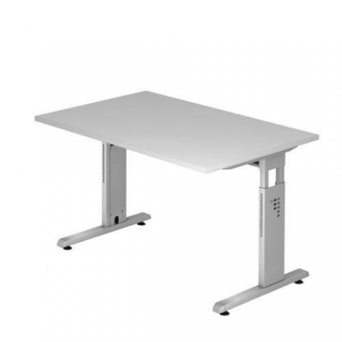 Výškově nastavitelný stůl ve světle šedé barvě. Nosná vzpěra pod deskou stolu slouží i jako kabelové vedení. barva desky: světle šedá rozměry desky d x h: 120 x 80 cm výška stolu: 65 - 85 cm (stavitelná) provedení: rovné materiál desky: laminovaná dřevotříska, tl. 25 mm materiál podnoží: kov barva podnoží: stříbrná RAL 9006 2mm ABS hrana, vyrovnávací šrouby, dodáváno v demontovaném stavu (spojovací materiál součástí balení)Kancelářský stůl Baron Minos, 120 x 80 x 65 - 85 cm, rovné provedení