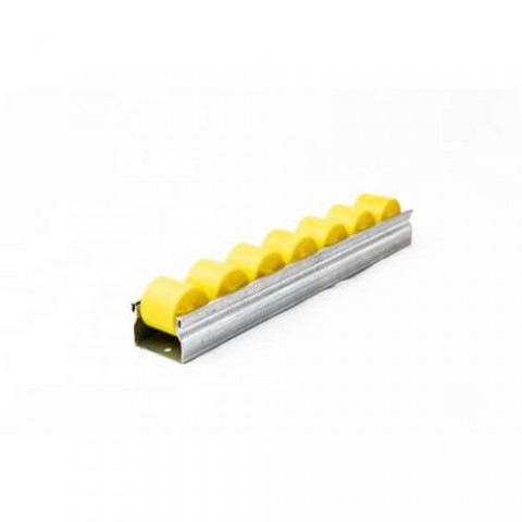 Standardní kladičkové lišty pro dopravníkové systémy. Vhodné pro přepravu lehkých předmětů, jako jsou kartonové krabice, KLT boxy, kompletovací a skladovací kontejnery. Díky kladičkovým lištám je možné spojení několika pracovních stanovišť, dodávka montážního materiálu na stanoviště aj. Lišta z pozinkovaného plechu tl. 0,8 mm. Nízká hlasitost kládek při otáčení. Nosnost jedné kladičky je 40 kg. Doporučený sklon 3,5 procent.Kladičkové lišty, polypropylen, šířka 35,5 mm, rozteč 33 mm