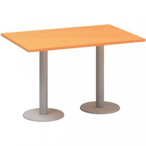 Jednací stoly Alfa 400 v pěti barevných provedeních. Konferenční stoly této řady systémově navazují na kancelářské stoly Alfa a doplňují je. Desky stolu jsou vyrobeny z laminované dřevotřísky tloušťky 25 mm s ABS hranou 2 mm. Podnoží v šedostříbrné barvě se skládá z kruhových ocelových desek a svislých nohou, které jsou v horní části opatřeny nosným křížem, zajišťujícím přímou podporu stolové desky. Díky povrchové úpravě epoxy-polyesterovou barvou se podnoží vyznačuje vysokou odolností proti všem druhům poškození v běžném kancelářském provozu. Konferenční stoly splňují normy ISO9001, ISO14001, ČSN18001, Ekologicky šetrný výrobek.Konferenční stoly Alfa 400 s šedým podnožím, 120 x 80 x 74,2 cm