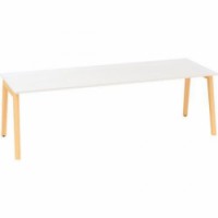 Moderní konferenční stoly s dřevěným podnožím vhodné do zasedacích a konferenčních místností. Podnoží vyrobené z masivního dřeva jasanu se zápustnými maticemi, z tohoto důvodu se kresba a odstín dřeviny mohou lišit. Kovové části podnoží jsou ošetřené práškovou epoxy-polyesterovou bílou barvou RAL 9010. Stolová deska z laminované dřevotřísky s tloušťkou 25 mm a ABS hranami 2 mm. Možný výběr desky z dezénu buk, bílá nebo černá. Dodáváno ve demontovaném stavu.Konferenční stoly Alfa Root, 240 x 100 x 74,2 cm