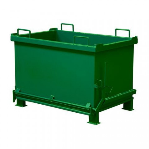 Kontejnery s výklopným dnem vhodné pro skladování a přesun různých druhů materiálů a odpadů. Dno lze odjistit pomocí lanka přímo z místa řidiče VZV. Uzavírá se opatrným pokládáním na pevný podklad, kdy se dno automaticky uzavře a zajistí.Kontejnery s výklopným víkem, objem 2 000 l