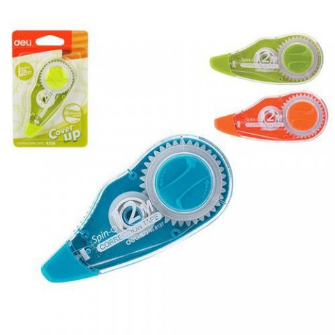 Jednorázový korekční strojek, vhodný pro všechny druhy korektur, jemná aplikace, neloupe se. Nanesený korekční film je suchý, proto lze text okamžitě přepsat.Korekční strojek DELI 5mm x 12m, mix, 24ks