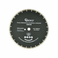Diamantový řezný segmentový kotouč pro hluboké řezání tvrdých stavebních materiálů. Rozměry 350x25,4mm. S přerušovaným diamantovým segmentem po celém obvodu (s drážkami, výřezy), který je rozdělený na konkrétní počet užších segmentů. Výřezy kotouč během řezání chladí a vynáší obroušený materiál z řezu ven. Vytváří širší řez a může štípat okraje. Lze s ním řezat za mokra i za sucha.Kotouč diamantový řezný do betonu, 350x25,4mm GEKO