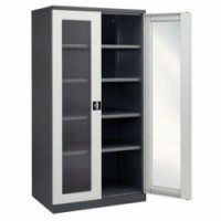 Svařovaná dílenská skříň z ocelového plechu tloušťky 1,2 mm, práškový lak. Křídlové dveře s úhlem otevření až 180° a výplní z plexi. Police přestavitelné v rastru 24 mm. Uzamykání dvoubodovým cylindrickým rozvorovým zámkem.Kovová dílenská skříň s prosklenými dveřmi Sofame, 4 police, 195 x 100 x 66,5 cm, šedá/tmavě šedá