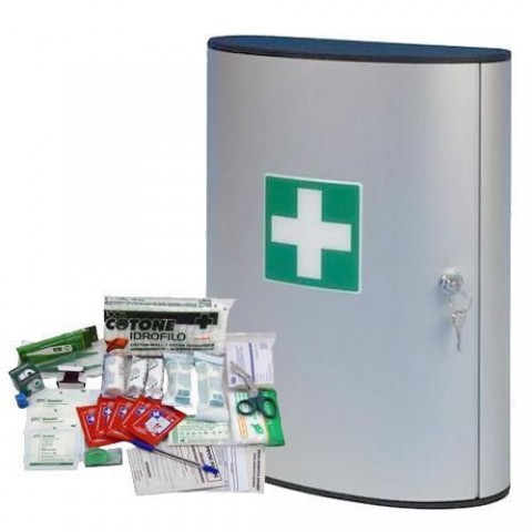 Kovová nástěnná lékárnička, uzamykatelná, 40 x 30,2 x 11,8 cm, s náplní KANCELÁŘ
