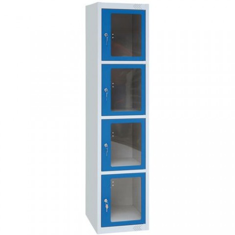 Kovová šatní skříň Manutan Expert Jenny, 4 boxy s průhledem