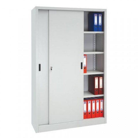 Kovová spisová skříň s posuvnými dveřmi, 4 police, 200 x 120 x 45 cm