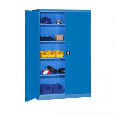 Dílenské skříně na nářadí jsou vybaveny čtyřmi výškově přestavitelnými policemi v rastru 25 mm. Kovové skříně jsou vyrobeny ze svařované konstrukce z ocelového plechu. Materiál: ocelový plech tl. 1 mm. Dveře skříní lze uzamknout rozvorovým zámkem. Povrchová úprava práškovým lakem.Kovové dílenské skříně, 199 x 120 x 43,5 cm