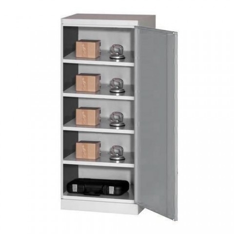 Dílenské skříně na nářadí jsou vybaveny čtyřmi výškově přestavitelnými policemi v rastru 25 mm. Kovové skříně jsou vyrobeny ze svařované konstrukce z ocelového plechu. Jednodvéřová varianta s uzamykáním rozvorovým zámkem. Plechové skříně jsou nabízeny ve třech barevných variantách. rozměry v x š x h: 199 x 80 x 50 cm materiál: ocelový plech tl. 1 mm nosnost: 400 kg nosnost na polici: 100 kg počet polic: 4 ks barva: modrá RAL 5012, šedá RAL 7035 barva dveří: modrá RAL 5012, šedá RAL 7035 hmotnost: 70 kg police stavitelné v rastru 25 mm, povrchová úprava práškovým lakem,možnost uzamčení - rozvorový zámek, zkompletovánoKovové dílenské skříně, 199 x 80 x 50 cm