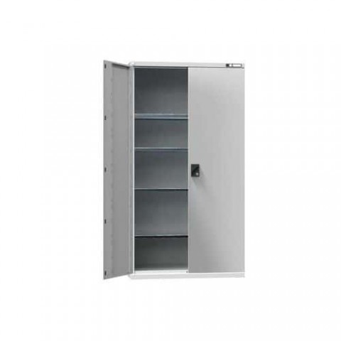 Dílenské skříně s křídlovými dveřmi s úhlem otevření 180°. Stabilní konstrukce z ocelových plechů. Skříň je vybavena čtyřmi policemi, které jsou nastavitelné v rastru 25 mm. Nosnost skříně je 600 kg.Kovové dílenské skříně na nářadí SK1, 1950 x 1044 x 625 mm, 4 police, šedá