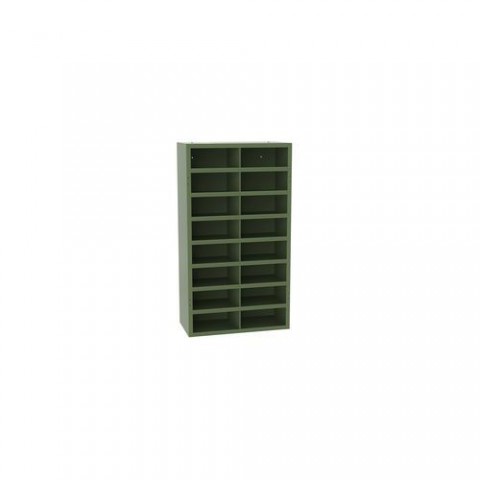 Kovové dílenské skříně s přihrádkami jsou vyrobeny z ocelového plechu o tloušťce 0,8 mm. Skříně obsahují 16 přihrádek s rozměry 180 x 455 x 500 mm. Vhodné jsou zejména pro ukládání dílenského materiálu (např. nářadí) v dílnách, garážích apod. Vysoká odolnost proti korozi díky povrchové úpravě práškovým lakem. Dodáváno ve smontovaném stavu.Kovové dílenské skříně s přihrádkami SFR161, 180 x 100 x 50 cm
