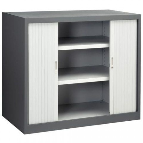 Svařovaná dílenská skříň z ocelového plechu tloušťky 1,2 mm, práškový lak. Police přestavitelné v rastru 24 mm. Uzamykání dvoubodovým cylindrickým rozvorovým zámkem.Kovové dílenské skříně s roletou Sofame, šedé/tmavě šedé