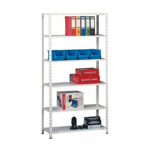 Kovové stacionární regály s šesti výškově nastavitelnými policemi v rastru 50 mm. Vhodné do dílen, skladů či archivů. Možnost dokoupení náhradních polic. Komaxitová úprava práškovou barvou. Celková šířka základního regálu: +10 mmKovové regály Bathor, základní, 200 x 100 x 40 cm, 480 kg, 6 polic, bílé, 2 ks