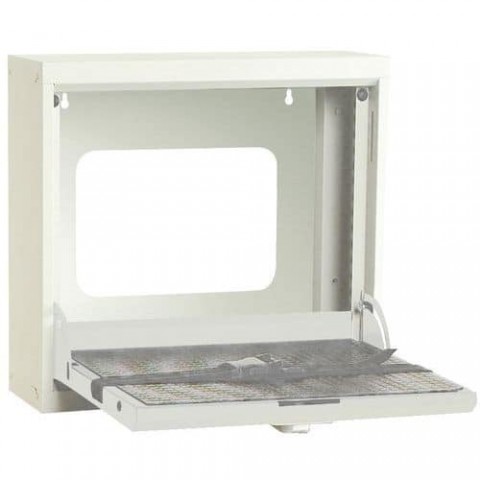 Svařovaný ocelový box pro uložení notebooku, tabletu apod. vhodný pro upevnění na stěnu. Sklopné uzamykatelná dvířka následně slouží jako pracovní police Součástí je také ochranná rohož a popruh. Rozměry v x š x h: 41 x 50 x 15 cm.Kovové schránky na notebook Bott