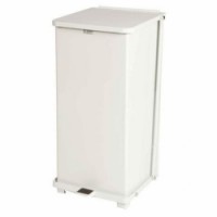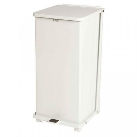Samozhášecí odpadkový koš Rubbermaid z pozinkované oceli, nalakován práškovou barvou. Systém pro tiché zavírání a uchycení pytlů na odpadky. Vhodný do zdravotnických zařízení, kuchyní apod.Kovový hygienický samozhášecí odpadkový koš Rubbermaid Defender, objem 100 l