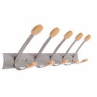 Kovový věšák na stěnu s dvojitými háčky s dřevěnými koncovkami.Kovový nástěnný věšák Joe, šířka 75 cm