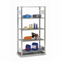 Kovový regál s pěti děrovanými policemi, které umožňují případný odtok unikajicí kapaliny do spodní záchytné vanové police. Rozměr záchytné police je 83 x 1 096 x 570 mm a objem činí 36 litrů. Police mají nosnost 150 kg a lze je výškově nastavit v rastru 25 mm. rozměry v x š x h: 200 x 106 x 53,5 cm celková nosnost: 1 300 kg nosnost na polici: 150 kg materiál konstrukce: pozinkovaný plech materiál polic: pozinkovaný plech počet polic: 5 ks typ: základní barva konstrukce: pozink barva polic: pozink hmotnost: 80,4 kg balení: 1 ks stavitelné police v rastru 25 mm, lze rozšířit o přístavbový regálKovový regál, základní, 200 x 106 x 53,5 cm, 1 300 kg, 5 polic, stříbrný