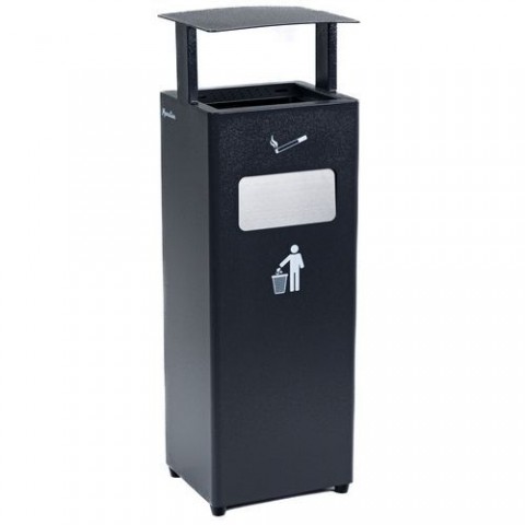 Kovový venkovní odpadkový koš s popelníkem vyrobený z pozinkované oceli. Uzamykatelná vnitřní nádoba. Vhodný pro venkovní použití díky povrchové úpravě práškovým lakem (RAL 7021) odolným proti korozi a UV záření. Snadné čištění díky hladkému povrchu.Kovový venkovní odpadkový koš Combi s popelníkem, objem 24 l - Manutan Expert