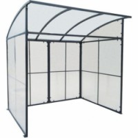 Přístřešek s obloukovou střechou a krytými třemi stranami pro ochranu před nepříznivým počasím. Vhodný pro zastřešení stojanů na kola, kontejnerů apod. Jednoduchá a pevná konstrukce z kovového rámu.Krytý přístřešek s obloukovou střechou Manutan Expert
