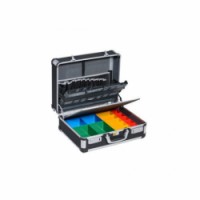 Profesionální kufr na nářadí z odolného plastu a hliníku. Horní část vybavena textilním organizérem s kapsami na nářadí a kapsou na dokumenty. Dolní část obsahuje vyjímatelné a přestavitelné zásobníky na drobný materiál. Pevný hliníkový rám s vyztuženými rohy. Uzamykání kombinačními zámky.Kufr na nářadí Allit AluPlus Service C44-3