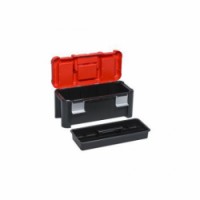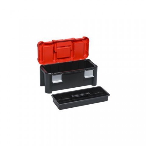Kufr na nářadí z odolného plastu s vyjímatelnou miskou s přihrádkami. Dva pevné a jeden vyjímatelný uzavíratelný zásobník na drobný materiál na víku kufru. Hliníkové uzavírací klipy a rukojeť, protiskluzové patky.Kufr na nářadí Allit McPlus Alu 25
