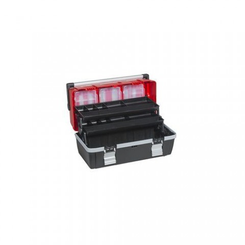 Profesionální kufr na nářadí z odolného plastu se dvěma výsuvnými policemi. Uzavíratelné organizéry na drobný materiál ve víku kufru. Hliníkové uzavírací klipy a rukojeť. Uzamykatelný na visací zámek.Kufr na nářadí Allit McPlus Alu C22