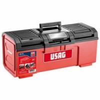 Přenosný kufr na nářadí o objemu patnácti litrů. Pro uložení drobných předmětů jsou na víku kufru umístěny dva úložné prostory. Uvnitř kufru je uschován vyjímatelný nosič nářadí. Uzavíratelnost pomocí kovového rychlouzávěru.Kufr na nářadí Usag TC 24