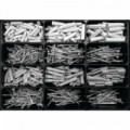 Tato sada je ideální pro údržbu, opravy a montáže v automobilovém, stavebním a elektroprůmyslu, kde je důležitý estetický vzhled a funkčnost. Skládá se ze 700 samovrtných šroubů TCB (O 3,5 až 4,8 mm) + 3 bitů PH.Sada samovrtných šroubů Degometal, 700 ks
