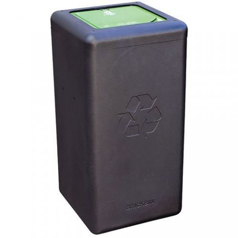 Odolný odpadkový koš na tříděný odpad, vyrobený z recyklovaného plastu. Nizozemská produkce z recyklovaného plastu (HDPE), složená z víček a obalů, která se vyrábí procesem rotačního lisování. 100% kruhový tvar. Tato jednotka pro selektivní třídění má výklopné víko s barevnou hliníkovou deskou s klapkovým otvorem se symbolem a textem pro označení toku odpadu (otvor o průměru 20 cm). Integrované úchyty na pytle zajišťují snadné upevnění odpadkové nádoby. Volitelně k dispozici: Sada plastových šroubů pro spojení několika košů dohromady a vytvoření stanice pro třídění odpadu. Nizozemský výrobce se specializuje na tvorbu designových předmětů z recyklovatelných materiálů, dokonce umožňuje použít vlastní odpad k výrobě individuálních odpadkových košů. Zeptejte se na možnosti.Kulatý odpadkový koš BrickBin 65 l na bioodpad