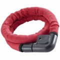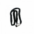 Řetězový zámek na motocykl. Ochranný kryt z textilie. Vložka zámku se 7lamelovými stavítky a krytem proti vniknutí nečistot.Řetězový zámek na motocykl, 8x1500 mm, černý