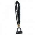 Řetěz dlouhý 900 mm je vyroben z kalené oceli. Řetěz s oky s čtvercovým profilem o průměru 10 mm. Třmen z kalené oceli s osmiúhelníkovým profilem o průměru 14 mm. Nylonový potah řetězu zabraňuje poškrábání laku. Obsahuje diskovou cylindrickou vložku se 7 stavítky, která je odolná proti vyhmatání. Navíc má dvojitou západku odolnou proti vypáčení. Bezpečnostní třída Master Lock™ 9.Řetěz na kolo Master Lock