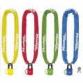 Zpevněný ocelový řetěz s ocelovým visacím zámkem- Délka 900 mm, obsahuje ocelové spojky o průměru 6 mm, které jsou odolné proti přeřezání. Nylonový kryt řetězu zabraňuje poškrábání. Visací ocelový zámek o průměru 40 mm je odolný proti povětrnostním vlivům. Plastový kryt na visacím zámku zabraňuje poškrábání. Třmen s průměrem 9 mm je vyroben z oceli pro odolnost proti přeřezání. Obsahuje 4-kolíkový válec zabraňující vyhmatání a dvojitou západku odolnou proti vypáčení. Bezpečnostní třída Master Lock™ 7.Řetězový zámek na kolo Master Lock 6mm, mix barev, 6ks