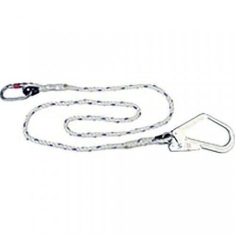Šňůra z pleteného lana (O 12 mm) se 2 oky. Silná pozinkovaná karabina a hák.Lano s hákem a karabinou Deltaplus