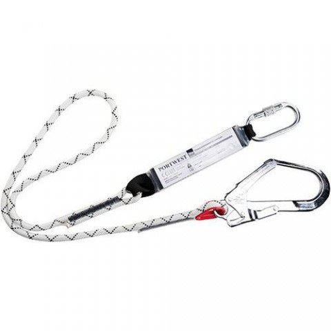 Lano s hákem a karabinou. Celková délka 180cm včetně konektorů. CE-KAT IIILano s tlumičem pádu, bílá