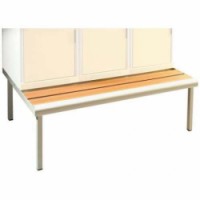 Lavice s ocelovou konstrukcí a plastovou sedací plochou se umisťují pod kovové šatní skříně. Latě z PVC v barvě teak. Nastavitelné nohy. Šířka sedací plochy: 30 cm.Lavice pod šatní skříně Acial, šířka 600 - 1 200 mm