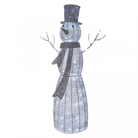 LED vánoční sněhulák ratanový, 124 cm, vnitřní, studená bílá, časovač