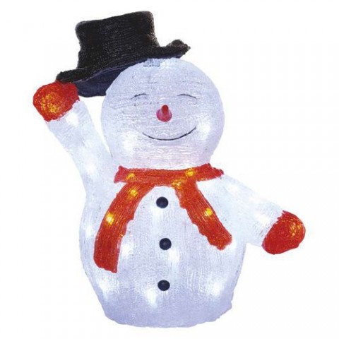 barva drátu: transparentní barva světla: studená bílá časovač: ano dálkový ovladač: ne délka přívodu: 5 m krytí: IP44 materiál: plast počet LED: 40 použití: venkovní i vnitřní příkon: 2,1 W prodejní obal: 1 ks, krabice produkt: sněhulák rozměr: 30 × 20 × 36 cm typ napájení: síťový adaptér vstupní napětí: 230 V AC výstupní napětí: 3,5 V DC záruční doba: 2 roky zdroj svícení: LED životnost: 10 000 hodinLED vánoční sněhulák s kloboukem, 36 cm, venkovní i vnitřní, studená bílá, časovač