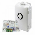 Přenosná nástěnná lékárnička vhodná do všech kancelářských a administrativních prostor, recepcí a pracovišť s běžnou mírou rizika úrazu. Uzamykatelná cylindrickým zámkem. Vybavená dvěma vyjímatelnými poličkami a dvěma vnitřními kapsami na straně dvířek. Uzamykatelná cylindrickým zámkem.Plastová nástěnná lékárnička, uzamykatelná, 42 x 31 x 15 cm, s náplní KANCELÁŘ