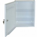 Nástěnná kovová lékárnička vhodná do průmyslových provozů nebo kanceláří. Vybavená rozbitným okénkem na náhradní klíč. Obsahuje dvě police. Uzamykatelná lamelovým zámkem. Povrchová úprava bílým komaxitem.Kovová nástěnná lékárnička, uzamykatelná, 60 x 45 x 16 cm
