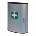 Hliníková lékárnička na stěnu vhodná do kancelářských, dílénských nebo průmysových prostorů. Vybavená dvěma otočnými přihrádkami a jednou plastovou kapsou. Uzamykatelná cylindrickým zámkem, dodávána se dvěma klíči. Povrchová úprava práškovým lakem.Kovová nástěnná lékárnička, uzamykatelná, 28 x 30,2 x 11,8 cm
