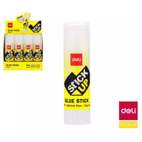 ACR materiál, netoxické, nezávadné, silně lepící, vypratelné, dobře schnoucí, bez rozpouštědel, vhodné do domácností, škol i kanceláří, lepí papír, lepenku, polystyren a foto papír, trvanlivost 24 měsíců, transparentní tuba, hmotnost 21g.Lepidlo DELI STICK UP 21g tuhé gelové