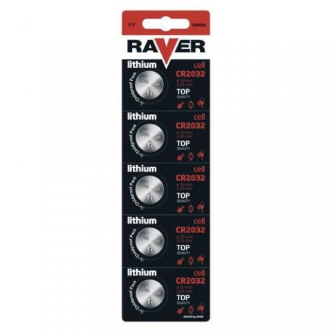 Lithiová knoflíková baterie RAVER CR2032, blistr