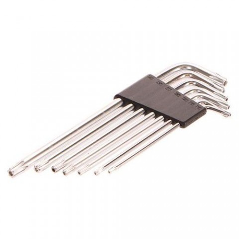 Informační text: plastový držák s přehledným značením velikostí Tech. údaje: T 10-15-20-25-27-30-40L-klíče TORX, sada 7ks, T10-T40 GEKO