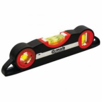 Kompaktní vodováha s délkou 230 mm. Tělo z tlakově litého hliníku pro vysokou odolnost proti nárazům a oděru. Obráběná základna pro větší přesnost. Magnetická základna se dvěma magnety. PŘESNOST: 1 mm/m. Tři lahvičky. Jedna velká vodorovná pevná lahvička pro lepší viditelnost. Jedna pevná vertikální lahvička a jedna otočná lahvička o 180°.Magnetická vodováha Mob s otočnou libelou