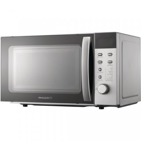 Mikrovlnná trouba s grilem 1 600 W. mikrovlnná trouba s grilem vnitřní objem: 20 l vnitřní prostor: lakovaný 6 úrovní výkonu vč. rozmrazování 9 automatických programů digitální ovládání: ano rychlé vaření: ano hodiny: ano akustická signalizace: ano dětská pojistka: ano otevírání dvířek: tahem horní gril: 900 W výkon mikrovlnného ohřevu: 700 W maximální příkon: 1 600 W průměr otočného talíře: 28 cmMikrovlnná trouba s grilem PHILCO PMD 2010S