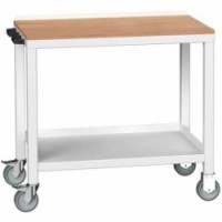 Mobilní dílenské stoly Bott Verso Weld s pracovní deskou tloušťky 2 cm typu multiplex nebo ocel. Nosnost až 300 kg, robustní svařovaná ocelová konstrukce, povrchová úprava práškovým lakem. Dvě pevná a dvě otočná kola s brzdou o průměru 12,5 cm, spodní ocelová police s nosností 100 kg.Mobilní dílenské stoly Bott Verso Weld, šířka 100 cm, multiplex/ocel