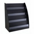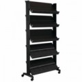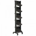 Pojízdný stojan na prospekty, letáky a reklamní tiskoviny. Plastová konstrukce v černé barvě vyztužená kovem s pěti plastovými šedými policemi. Možnost umístění 21 prospektů formátu A4. Police jsou nakloněné a opatřené vyvýšenou hranou 3,5 cm.Prezentační stojan Alicante, 5 přihrádek