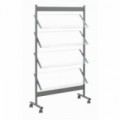S 5 policemi, které jsou umístěné na jedné straně. Snadno přemístitelný díky 4 kolečkům. Do každé police se vejdou 3 stohy dokumentů formátu A4 umístěné vedle sebe.Jednostranná prezentační stojan Paperflow, 5 přihrádek
