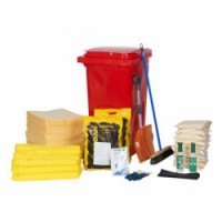 Mobilní plastová popelnice (240 l) obsahuje sadu chemických sorbentů s příslušenstvím pro rychlou likvidaci uniklých kapalin. Popelnice je odolná vůči chemikáliím a UV záření. Vhodné např. do laboratoří, chemických provozů či jiných prostředí kde se manipuluje s chemickými látkami.Mobilní havarijní souprava Absodan, chemická, sorpční kapacita 235 l