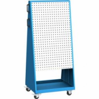 Nářaďový vozík sloužící pro přehlednější uložení a snadný přístup k nářadí se spodní policí. Mobilitu vozíku zaručují dvě pevná a dvě otočná kola s brzdou. Manipulace za pomocí plastových rukojetí. Rastrování perforovaného panelu 10 x 10 mm s roztečí 38 mm. Nosná část dílenské skříně je povrchově upravena práškovou barvou. Perforované panely jsou umístěny na obou stranách stojanu a jsou chráněny proti korozi pozinkováním. Užitečný pomocník pro dílenské či servisní prostory. Jednotlivé vozíky se liší rozměrově. rozměry v x š x h: 162 x 71 x 60 cm materiál: ocelový plech nosnost: 160 kg nosnost na polici: 40 kg počet polic: 1 ks barva: modrá RAL 5012 hmotnost: 65 kg zkompletováno, perforováno 10 x 10 mm s roztečí 38 mmMobilní pracovní stojan, 162 x 71 x 60 cm